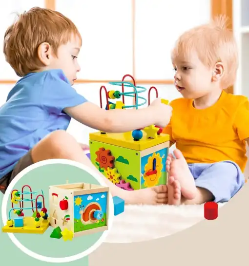 Drvena edukativna kocka je multifunkcionalna igračka pomoću koje djeca razvijaju svoje vještine, kao što su sposobnosti ruku, sihronizaciju pokreta, vid i mnogo drugih vještina koje je neophodno razvijati u tom dobu.